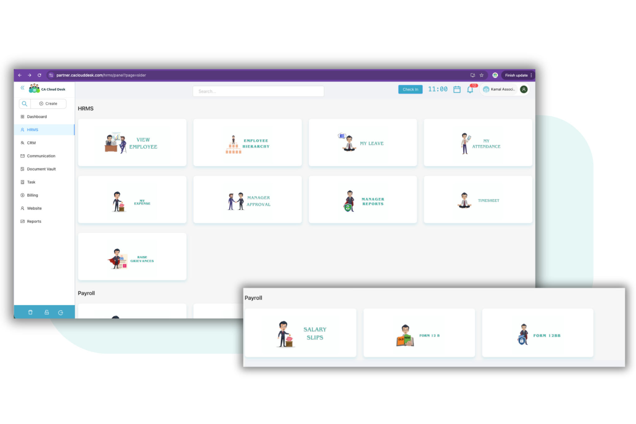 CA CloudDesk HRMS helps CA firms manage attendance, leaves, payroll, and employee performance from a single dashboard-