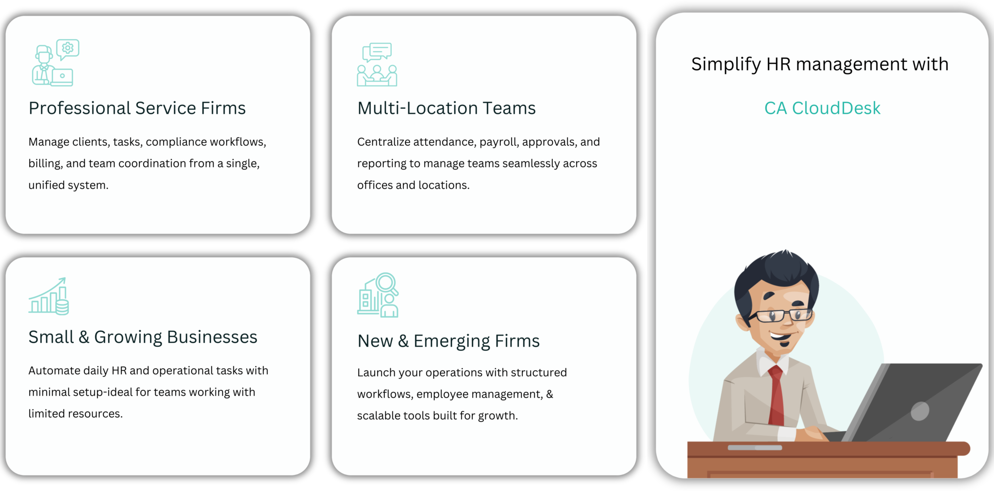 CA CloudDesk offers powerful HRMS tools tailored to simplify workforce management for organizations of every scale.