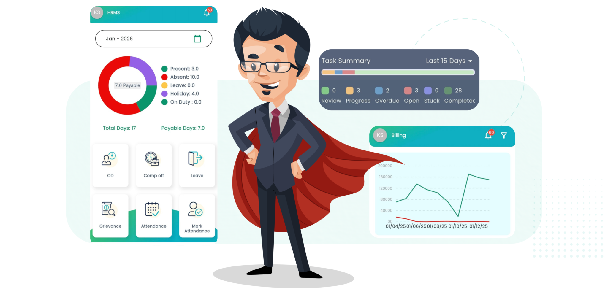 Absolutely. CA CloudDesk HRMS lets you manage attendance, leaves, payroll, employee records, timesheets, and performance tracking-All in one place.