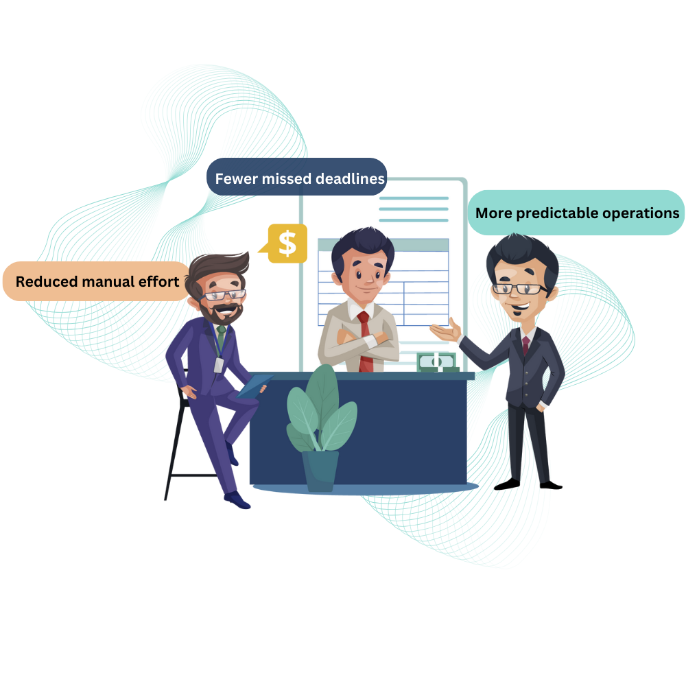 Manual status tracking, follow-ups and reminders consume time and increase the risk of human error.