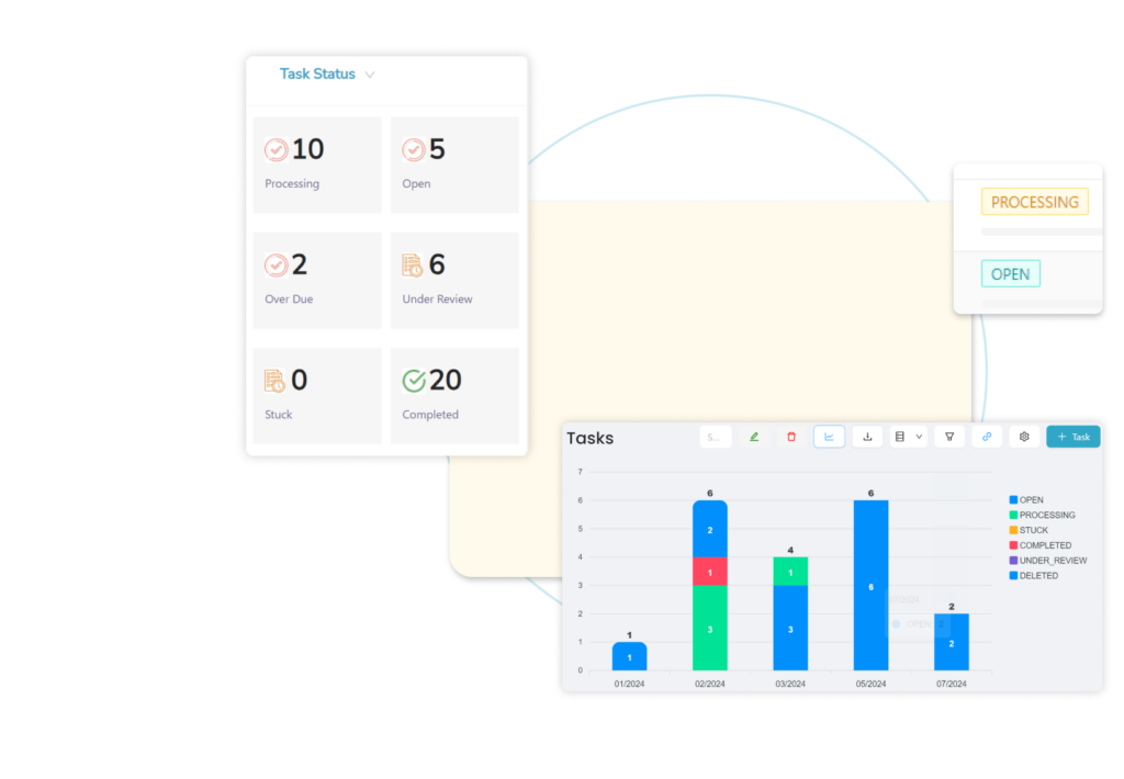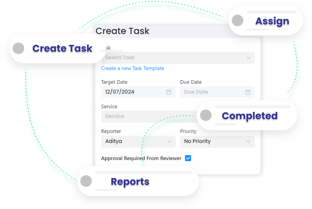 Create Tasks with just a few clicks, using pre-made templates, detailed SOPs, Assignee, deadline priority, and description. Task assigning becomes a breeze for you and unlocks operational efficiency in your firm.